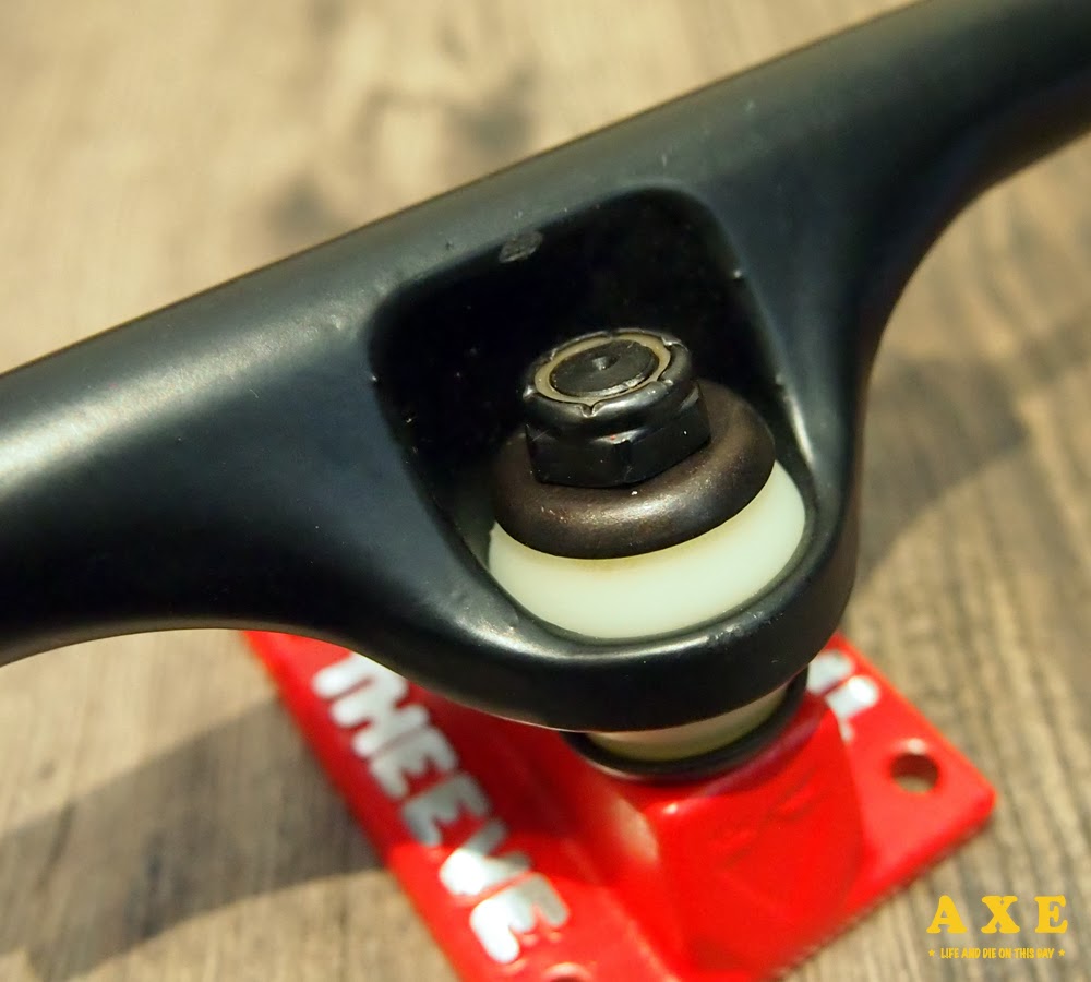 預計星期六(11/2)發售THEEVE - TITANIUM AXIE / TX0019 ,正式引進美國知名品牌THEEVE TRUCK,高品質滑板輪架,於世界各地都深受滑板玩家的喜 愛,輕量化且更加堅固的品質,讓使用壽命大幅提升,也讓 做招難度減低不少,多樣的輪架功能分類,可以讓不同地形 、需求都獲得直接的滿足,TX0019鮮艷的配色,可以為你的板子帶來一些新氛圍,具有比較靈敏反應 的特性,重量與一般品牌相比大幅降低,建議售價:230 0元/組,歡迎至AXE參觀選購。
